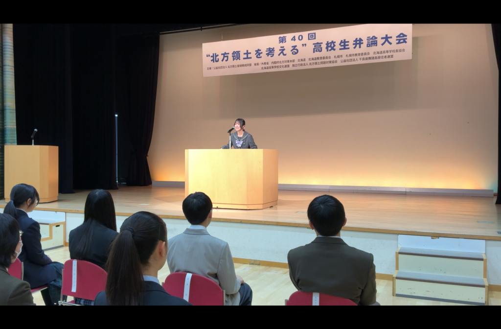 2026年1月17日(土)に、札幌市にて「第40回”北方領土を考える”高校生弁論大会」(主催:北方領土復帰期成同盟、後援:外務省 他)が開催され、本校弁論部・ULコース2年生の河森絢音さんが出場いたしました。