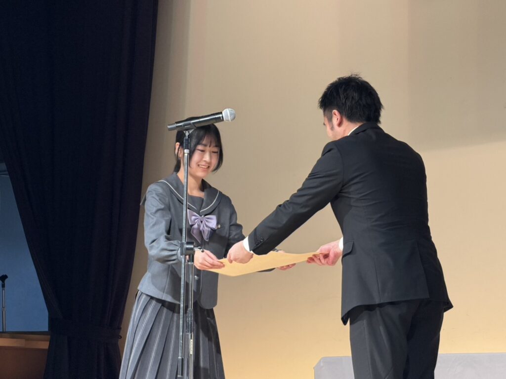 結果は昨年度の芳賀さんに続き、最優秀賞(外務大臣賞…1位)という成績でした。